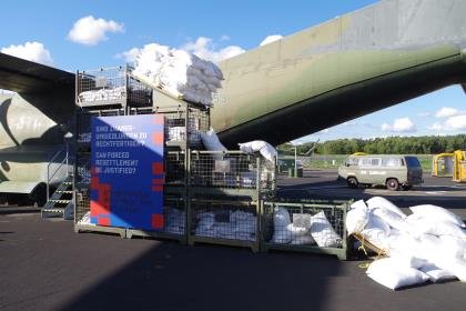 Die multiperspektivisch angelegte Ausstellung betrachtet die Hilfsmaßnahmen in politischen, militärischen und gesellschaftlichen Zusammenhängen. Handelten die hilfeleistenden Staaten in Ost und West aus rein humanitären Beweggründen oder auch aus politischen Interessen? Warum brauchte man militärische Transportflieger, um die Hilfsgüter zur notleidenden Bevölkerung zu bringen? Wie begegneten sich west- und ostdeutsche Soldaten im Einsatz? Wie hatte sich die durch mediale Berichterstattung aufgerüttelte Zivilgesellschaft in die Hilfe eingebracht? Was haben Ölradiatoren mit einer Kritik an Hilfsaktionen aus dem globalen Norden zu tun?